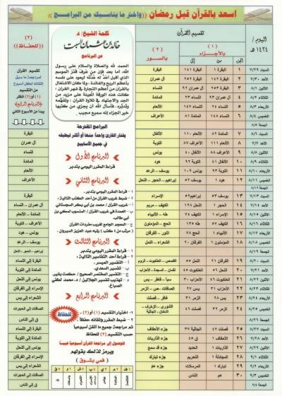 الكثير يسعى في البحث عن جداول من خلالها ينظم عملية الحفظ والمراجعة، ونعلم جيدًا أن الحفظ بدون خطة تجمع ما بين الحفظ والمراجعة فبالتأكيد سوف تفشل عملية الحفظ، ولذلك علينا أن نهتم بـ كيفية عمل جدول لحفظ القران، فهذا برامج مقترحة لختم القرآن بأن يختار القارئ الطريقة المناسبة له ليطبقها: