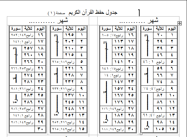 وهذا أيضًا جدول حفظ القران الكريم ومراجعته
